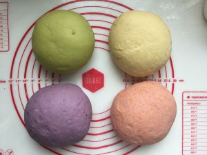 1.前四材料混合,牛奶缓缓倒入,拿筷子迅速搅动,然后揉成面团,直至盆光面光手光。保鲜膜覆盖,静置发酵(步骤忘记拍^_^)