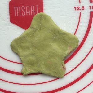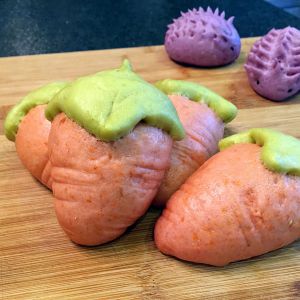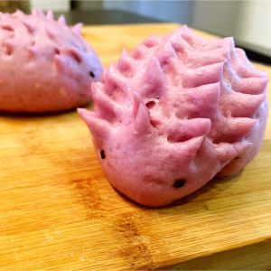揉成椭圆面团,用美工剪剪出刺,黑芝麻用水沾在脸侧