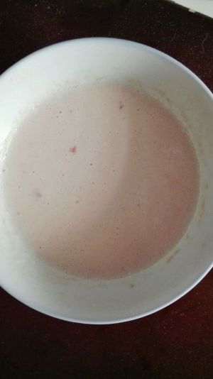 蛋清加少许白糖、炼奶打散!注意不要打出泡泡!
