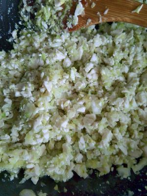 大白菜洗净,剁碎,放适量盐腌10分钟,攥干水备用。