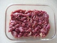 烧好锅,热锅凉油下入羊肉片变色即出锅。出锅后的羊肉沥出多余汁水。