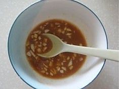 蒜拍碎切成末,加入香油、少许醋、酱油、淀粉调成芡汁。