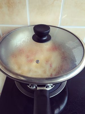 再倒入300毫升热水以及生抽、盐,白砂糖。