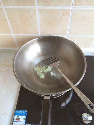 热油后将蛋液倒入,用铲子快速翻炒,炒散至凝固即可。炒熟后的鸡蛋盛出到碗中备用。