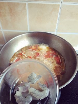 最后倒入虾,因为虾容易熟,否则虾煮老了就不好吃啦