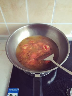 西红柿蛋炒的差不多的时候倒入一碗凉水,就是你面汤的量,等汤打滚的时候出锅。