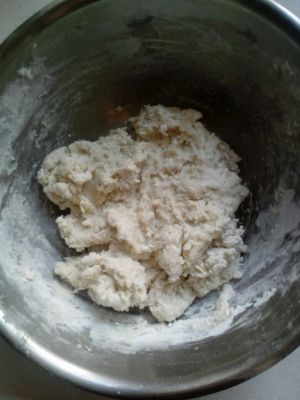 温水分几次倒入面粉中用筷子搅拌(水温烫手)
