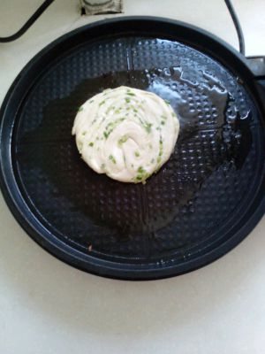 擀薄以后,电饼铛里放点油,抹匀,然后就可以把饼放进去煎了,没有电饼铛平底锅是一样的,多翻几次面就好了。喜欢吃软一点的,饼微黄的时候沿着锅边转圈加少量水。