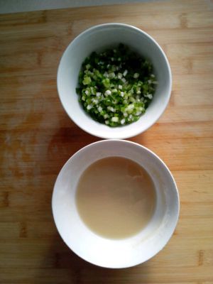 面揉好后,放着醒20分钟。这个时间用来做葱油,葱切成葱花状,也可以加一点蒜,也切碎,再加入适量盐,五香粉,然后锅加热倒入油,油冒烟了关火把热油泼在葱花上,拿筷子搅拌一下。