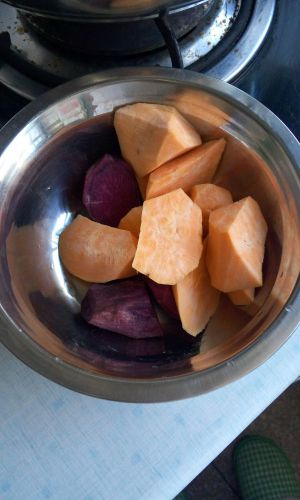 地瓜洗净,切块,为了能快速熟,我稍稍小蒸了一下。