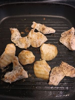 煎鸡胸肉,煎的时候撒点盐和黑胡椒粒,我煎剂了点柠檬汁,当然也可以拌的时候剂
