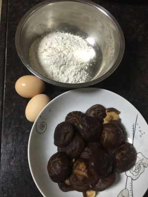 2个鸡蛋清打起泡,加入面粉搅拌至筷子提起来成直线。加入切好的香菇沾满面糊