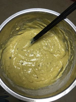 将面粉、水、盐、鸡蛋调成可以流动的面糊(个人不太喜欢吃面多的,所以面糊偏稀)