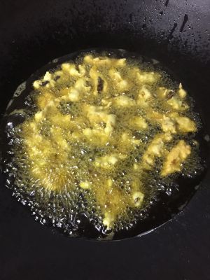 一个一个下,炸到微微回缩,外面有些金黄就可以出锅了