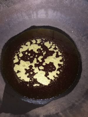 锅烧热倒油加热,什么油都可以,我选择的是菜籽油。