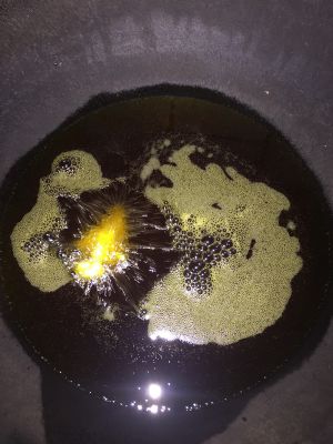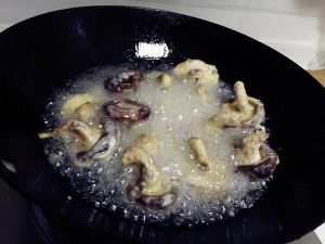 用小锅倒油加热至5、6成热,一个个放入香菇炸至金黄色捞出