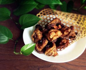 炒锅热油,把香菇一个个入锅,中小火慢炸,炸至金黄微焦,就可以放到厨房纸上吸一下油。