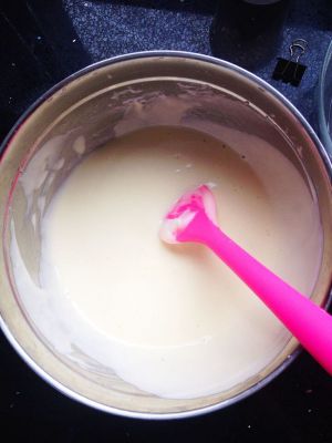 鸡蛋一个,面粉半勺,加适量盐,鸡精,牛奶,搅拌均匀,如果觉得有面粉没搅开可以过滤一下 (不要加水,主要就是用牛奶替代水)