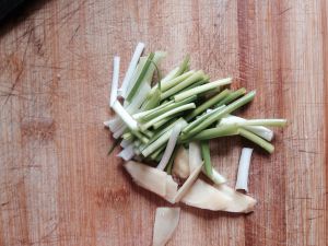 将葱、姜、蒜(老婆不吃,未放)洗净切片、切段备用!