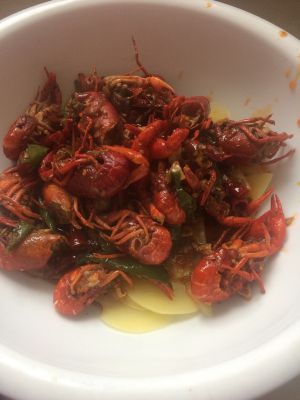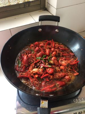小龙虾刷洗干净,挑虾线,剪掉头部三角处和小脚,锅中下油,先放姜蒜爆香,再放小龙虾爆炒,放盐和少许生抽翻炒入味;