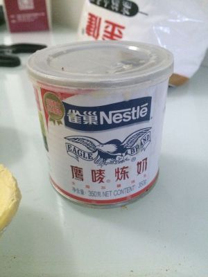 鸡蛋搅匀,放入淡奶中,并搅匀。