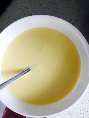 鸡蛋打入混合好的牛奶中