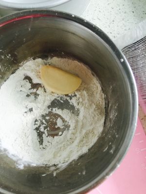 把黄油室温软化,把高筋粉,低筋粉,盐,黄油,一起放到碗里去,然后加入水,水不要一下子倒进去,要慢慢的加进去,可以和成面团,就可以不加了,然后揉成光滑的面团,