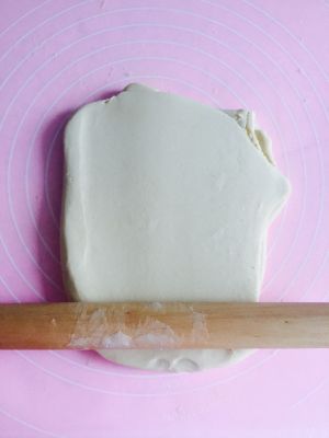 取出来,擀成0.3厘米的薄厚度,卷成卷