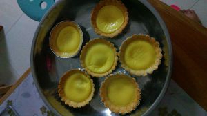 将烤箱210度,中层,上下火预热10分钟,将调好的蛋挞水倒入冷冻蛋挞皮内,放入烤箱!210度,中层,上下火烤20分钟即可!