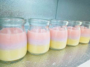 重复1-6的步骤,一定要等一层凝固后,再倒入另一层,美美的彩虹布丁做好啦!