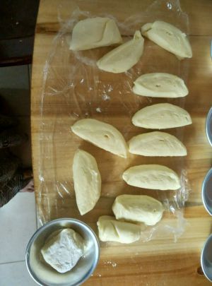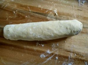 面团冷藏好后,拿出来用刀切成12等份的小面团(由于室温太高,导致面团变软了,切出来变长条了,君之切出来的是圆形的(。•́︿•̀。))
