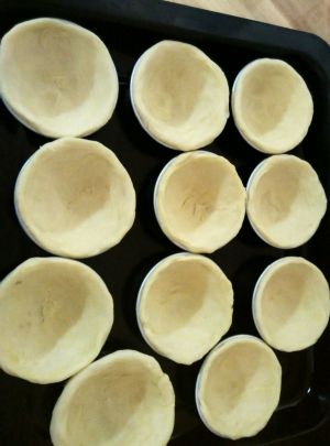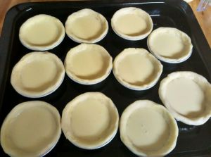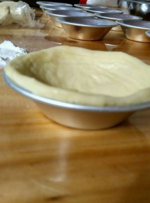 17.捏挞皮,挞皮要捏得比挞模要高,还然烤的时候会漏水。