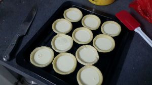 塔皮摆入烤盘,我的塔皮比较大,一盘只能烤9个