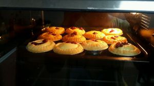 放入烤箱,上下火190度,25分钟,中间靠下,我的烤箱有5层,我放在倒数第二层,塔水稍微凝固就放入蔓越莓,当然,为了安全,烤箱要暂停才能放蔓越莓