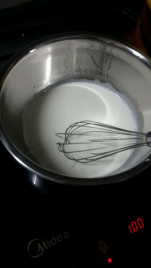 淡奶油、牛奶、炼乳、糖放入小锅加热,直到融化,不必沸腾