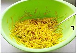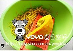 南瓜去皮去瓤,刨成丝。