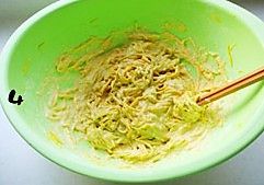 南瓜丝变软后,加入面粉、胡椒粉、水调匀。
