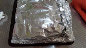 把腌制好的羊排放在洋葱上,把锡箔纸包裹好,放入预热好的烤箱,200度烤30分钟