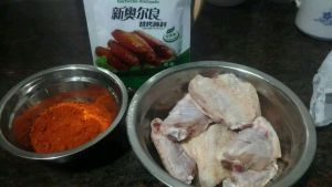 鸡翅洗干净,用干净布把多余水分吸干,新奥尔良粉倒好备用
