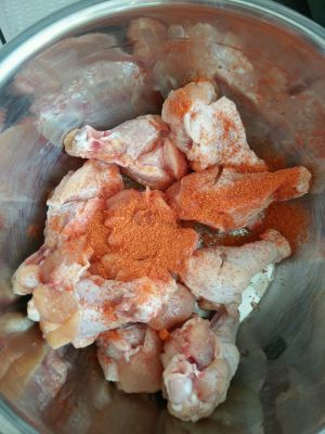 鸡翅洗净水分沥干,放入调料粉拌匀