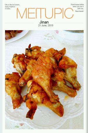 烤箱预热200°,放入鸡翅,上下火烤20分钟。(可设定10分钟,中途加摸一次蜂蜜)。