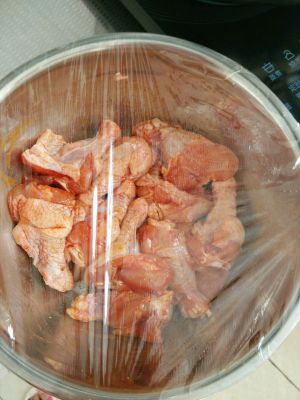 将切好的鸡翅倒入调好的料汁,用保鲜膜封口,腌制4小时以上(时间越长味道越好哦)。