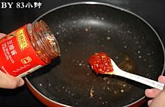 锅中余油再次烧热,加入李锦记豆瓣酱炒至出红油。