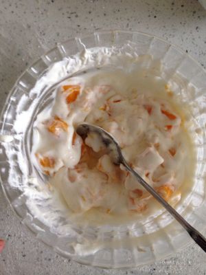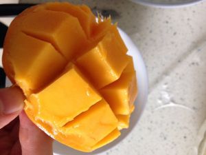 用多余的奶油和芒果丁拌了做了水果沙拉,婆婆说吃起来爆爽,因为我在减肥所以不敢吃