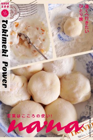 取冷藏好的面糊取出,取适量面团用擀面杖擀成薄皮,加入奶油和芒果丁包成团子,再滚上一层炒好的糯米粉,放入冰箱冷藏就可以吃了,味道棒棒哒~~