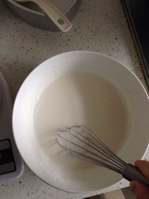 将牛奶和细砂糖用微波炉加热一分钟让糖溶化,将糯米粉和生粉放入牛奶液中搅拌成面糊(面糊一定要搅拌至无颗粒物)