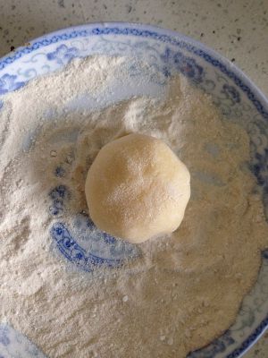 取一小块蒸熟的糯米,沾满糕粉,手上也要沾糕粉,用擀面杖擀成薄面皮,和饺子皮差不多的厚度