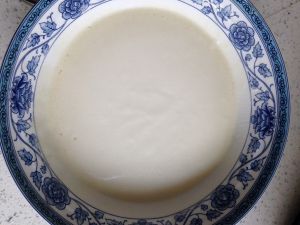 将蒸好的面糊加入黄油,搅拌使黄油溶化(因为我的面糊没蒸熟,所以在加入黄油后又蒸了段时间),放入冰箱冷却待用