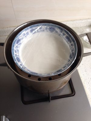 面糊盛在浅底的盘中,放入开水锅中蒸15分钟