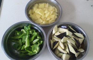启动: 自动启动 时间: 0 S 温度: 0 ℃ 食材洗净 土豆切厚片 茄子尖椒切滚刀块
